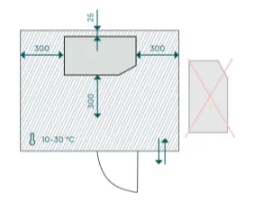 - Abstand zur Decke: > 300 mm