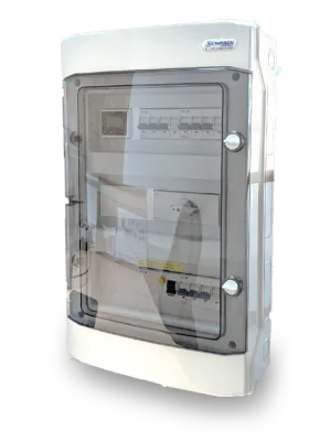 - Fertig installierte Box zur manuellen Umschaltung in den Notstrombetrieb, inkl. Energy Meter LAN, Abmessung (H x B x T): 500 mm x 300 mm x 200 mm