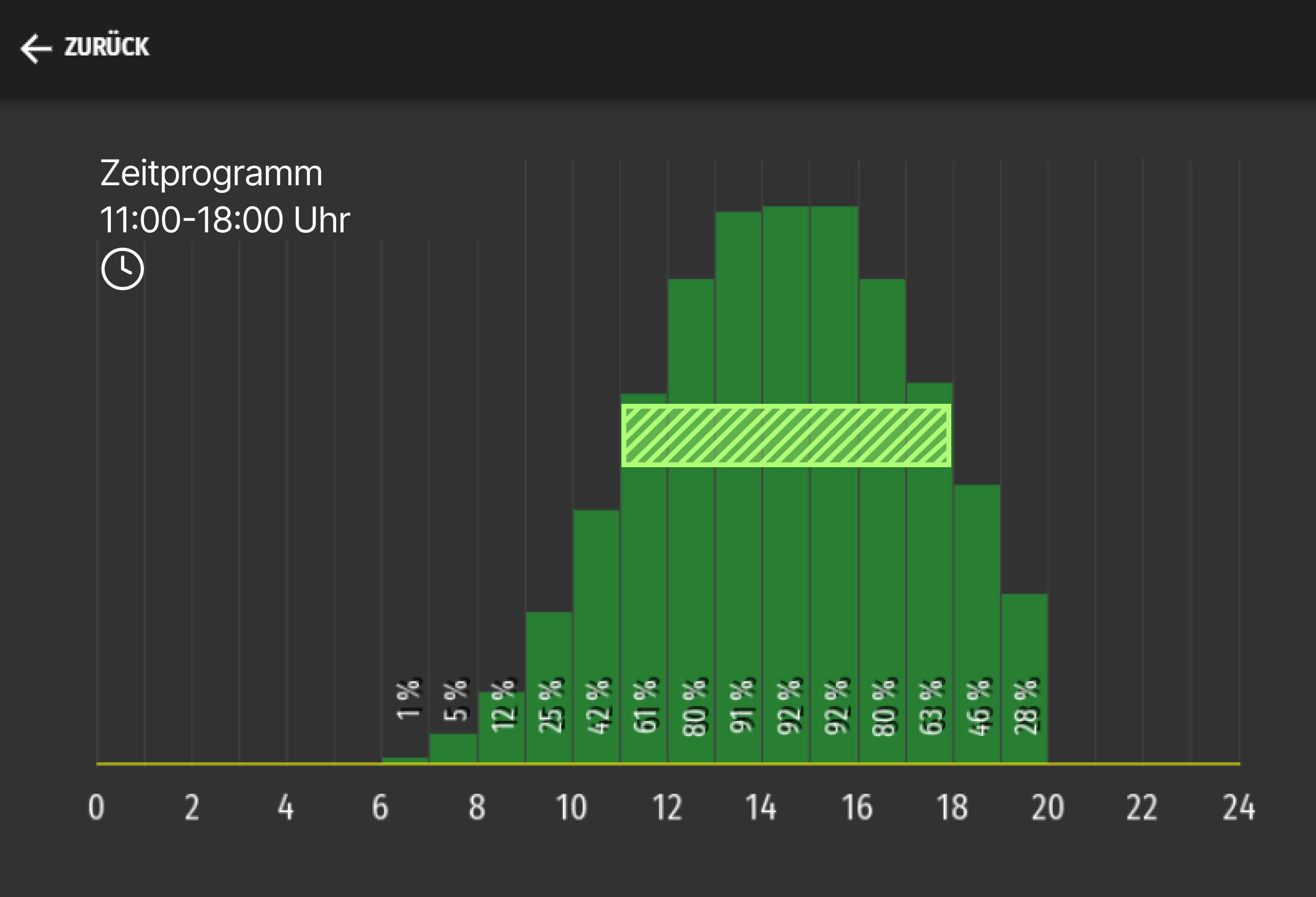 - Aktives Be- und wärmeintelligentes Entladen je nach PV-Ertrag UND manuelle Beladung auf einen eingestellten Wert zu einer gewünschten Uhrzeit