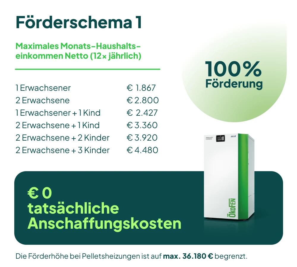 Bei dieser Förderschiene gelten besonders strenge technische Anforderungen. Gefördert werden ausschließlich Pelletsheizungen, die den neuen Richtlinien des Österreichischen Umweltzeichens UZ 37 (2025) entsprechen, sowie Wärmepumpen mit einem Kältemittel unter einem GWP von 150.