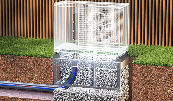 Minimaler Aufwand, maximal praktisch: Mit dem Do-It-Yourself-Fertigfundament aus hochwertigem Edelstahl werden die Vorarbeiten zur Aufstellung des Aussengerätes zum Kinderspiel: Einfach ausgraben, Kiesgrundlage schaffen, Fertigfundament aufstellen, ausrichten und mit Schotter auffüllen. FERTIG.
