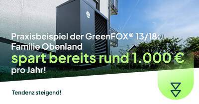Die GreenFOX® bietet mit dem GreenMode erstmals die Möglichkeit, vorrangig CO₂-armen und möglichst günstigen Strom zu nutzen, indem sie automatisch auf Wetterdaten, CO₂-Daten und Strompreise reagiert. Über eine Datenbank greift die Wärmepumpe auf Live- Elektrizitätsdaten zu und erkennt dadurch, wie „grün“ und günstig der gerade produzierte Strom ist. Dadurch wird die Heizzeit so verschoben, dass der Betrieb möglichst in Zeiten mit höherem Anteil an CO₂-armem und günstigem Strom stattfindet. Wenn eigener Solarstrom vorhanden ist, wird dieser bevorzugt genutzt, wodurch die Abhängigkeit von externem Strom weiter reduziert wird.