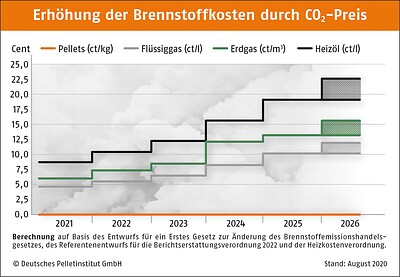 Neben steigenden Spritkosten für Automobile mit Verbrennungsmotoren wird die CO2-Steuer auch deutliche Auswirkungen auf die Heizkosten haben. Am stärksten betroffen sind die Energieträger Heizöl, gefolgt von Erdgas und Flüssiggas. Wer fossile Brennstoffe nutzt und zudem in einem alten und unsanierten Gebäude wohnt, wird sogar noch stärker zur Kasse gebeten. Bei einem Einfamilienhaus mit einem Heizölverbrauch von ca. 3.000 Liter Heizöl (ca. 30.000 kWh) pro Jahr ist bis zum Jahr 2026 eine Kostensteigerung von über 600 Euro zu erwarten.