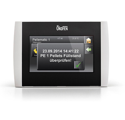 Durch die Integration von intelligenter Sensortechnik und einer Onlineverbindung hat ÖkoFEN eine automatische Füllstandsüberwachung entwickelt, die den Heizungsbetreiber immer rechtzeitig daran erinnert, Pellets nachzutanken. Die Erfassung der Brennstoffvorräte erfolgt mittels eines kapazitiven Sensors, der entweder im Lagerraum oder im Gewebetank so positioniert wird, dass er bei einem frei wählbaren Füllstandsniveau ein Signal an die Heizungsregelung sendet. Diese generiert eine Textnachricht, die am Display des Kessels bzw. der Fernbedienung der Heizung im Wohnraum angezeigt wird. Darüber hinaus ist es auch möglich, die Nachricht komfortabel per E-Mail direkt auf‘s Smartphone, Tablet oder PC übermitteln zu lassen.