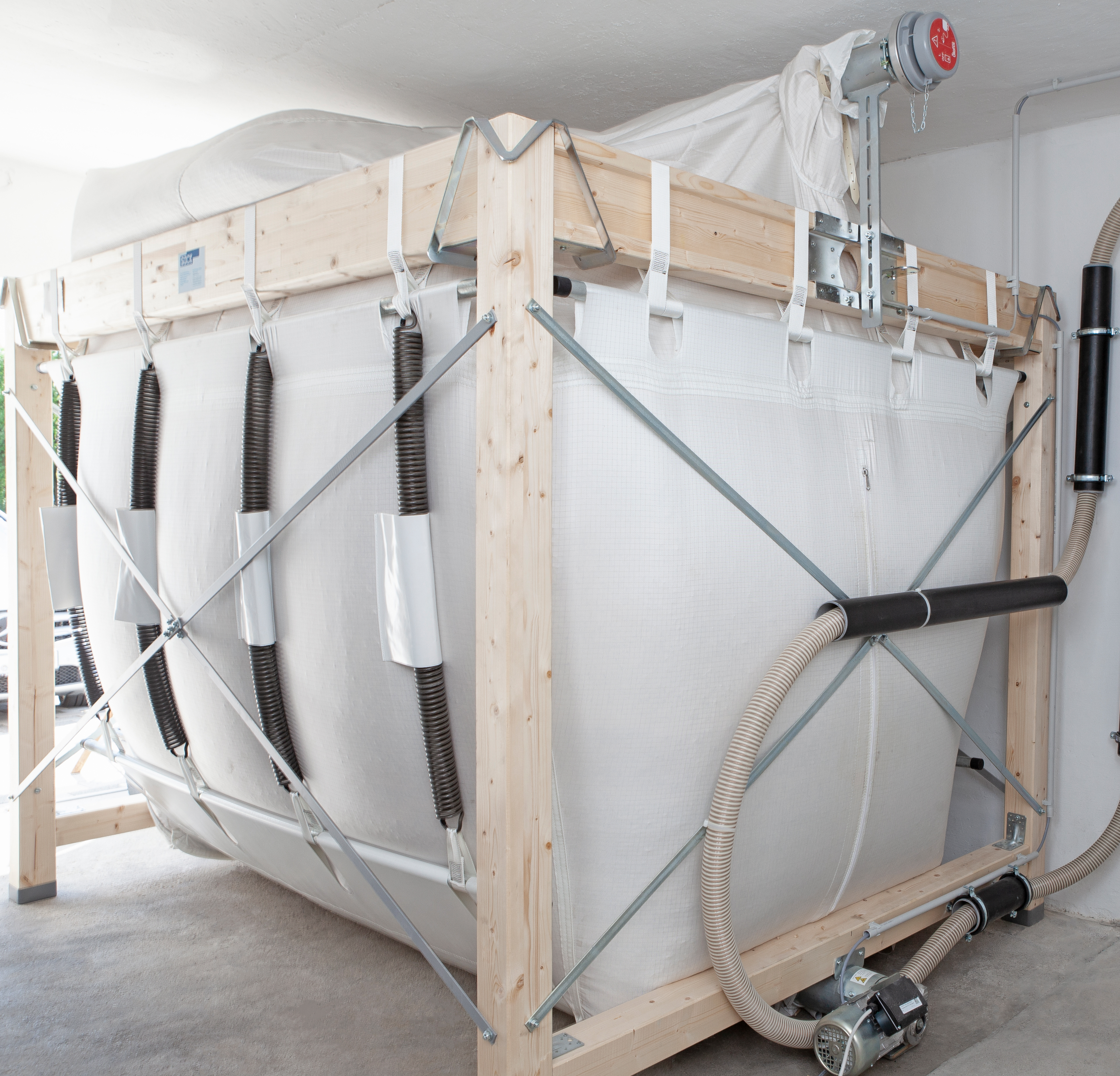 Auch optisch erinnert heute in seinem Keller nichts mehr an die alte Heizung. Hell, freundlich und sauber sehen die frisch renovierten Räume aus. Wo früher das Heizöllager war, sind die alten Öltanks einem großzügigen Pelletgewebetank gewichen. In diesen werden die Pellets vom Tankwagen über ein Vakuumsaugsystem eingeblasen. Vom Lager aus werden sie je nach Bedarf vollautomatisch zum Kessel transportiert, der zusammen mit einem Pufferspeicher für Warmwasser in einem Nebenraum steht. „Mein Heizungsbauer hat sehr ordentliche Arbeit geleistet. Dank perfekter Planung und Terminierung wurde in gut einer Woche die alte Anlage samt Tanks ausgebaut, die Räume gereinigt, die neue Anlage montiert und in Betrieb genommen“, erinnert sich Jochen Christl zufrieden.