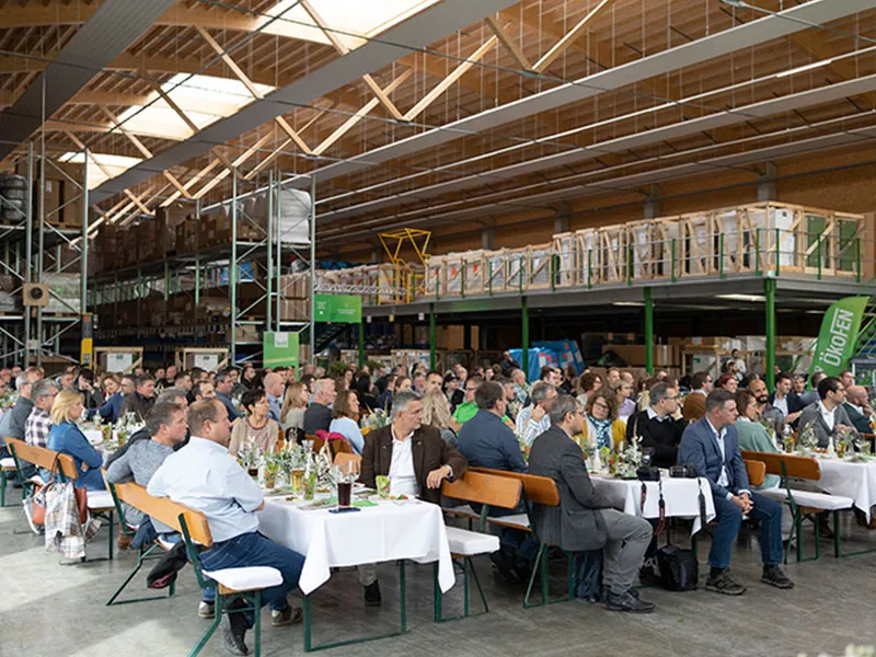 ÖkoFEN beschäftigt als ausgezeichneter Top-Arbeitgeber international mehrere Hunderte Mitarbeiter*innen. Seit Gründung des Unternehmens haben sich die Anzahl der Mitarbeiter:innen und die einzelnen Standorte stark entwickelt: So wie beispielsweise der 2022 großräumig erweiterte Standort im bayerisch-schwäbischen Mickhausen. Die Errichtung neuer Nutzflächen für Lagerlogistik und Büroarbeitsplätze stand ganz im Zeichen der umweltbewussten Firmenphilosophie. Im Rahmen dieser Erweiterung setzten wir 680 m³ Holzbaustoffe ein und konnten so rund 460 Tonnen CO₂ nachhaltig speichern. Die Holzbauweise bindet langfristig Kohlenstoff und sorgt nebenbei für Pellets in der Reststoff-Verarbeitung. Bei jedem Betriebsausbau achten wir selbstverständlich auf minimale Flächenversiegelung und die Förderung von Biodiversität.